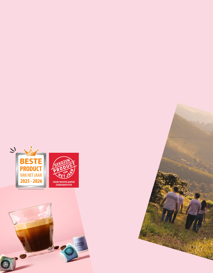 Onze koffie is door consumenten gekozen tot Product van het Jaar 2025–2026 én onze espresso is gekozen tot Beste Product van het jaar in de categorie koffie. Twee echte publieksprijzen dus — mensen die ’t thuis drinken, vonden het simpelweg de lekkerste koffie.
